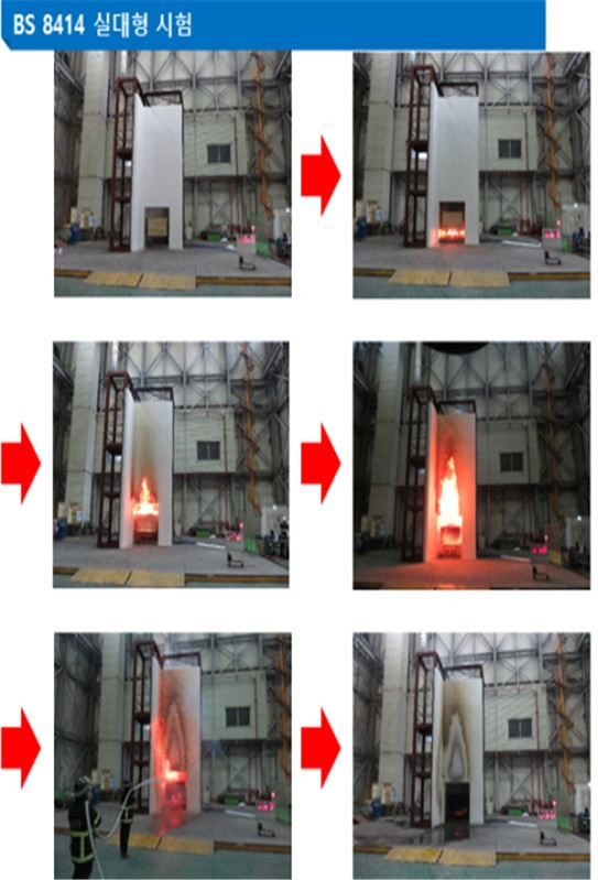 실대형 시험은 기존의 샘플 시험에서 제품 및 시공부분을 실제 사용 방법에 맞게 제작하고, 실제 화재와 유사한 조건에서 화염에 노출시켜 화재 연소·확산성능 등을 평가하는 시험방법이다.