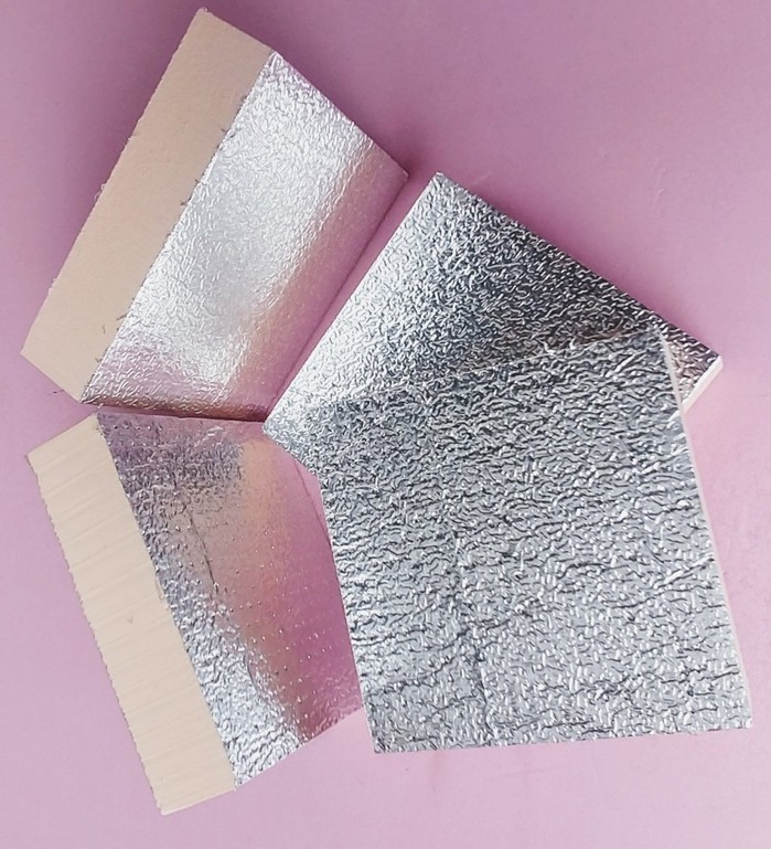 반대 쪽 면은 은박지가 부착된 면으로 건물 외벽 시공 시 바깥으로 향하는 면이다.