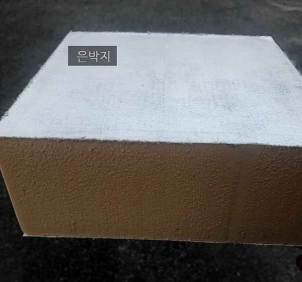 반대 쪽 면은 은박지가 부착된 면으로 건물 외벽 시공 시 바깥으로 향하는 면이다.