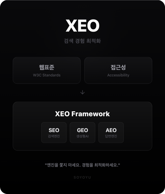 검색 경험 최적화 전문기업 소요유(SOYOYU, soyoyu.cc)는 독자적인 ‘XEO(검색 경험 최적화)’ 솔루션을 공개하며 초기 스타트업과 중소기업이 기술적 자원을 최소화하면서도 AI 검색 환경에서 경쟁력을 확보할 수 있는 실질적인 대안을 제시했다.